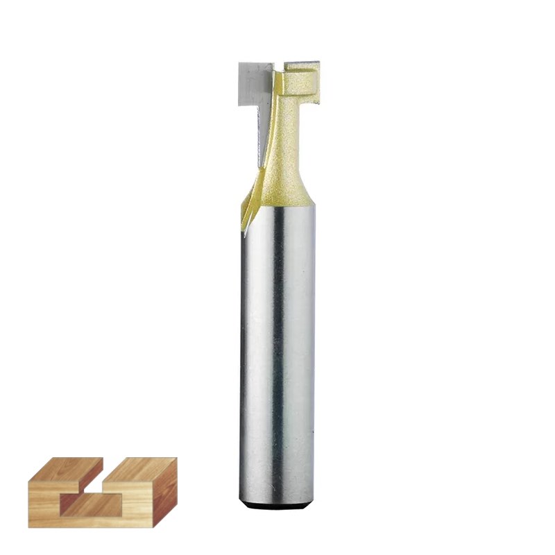 Т-образная фреза применяется для обработки мягких и твердых пород дерева, МДФ, ДСП, панельных и плиточных материалов, клее содержащих заготовок.
