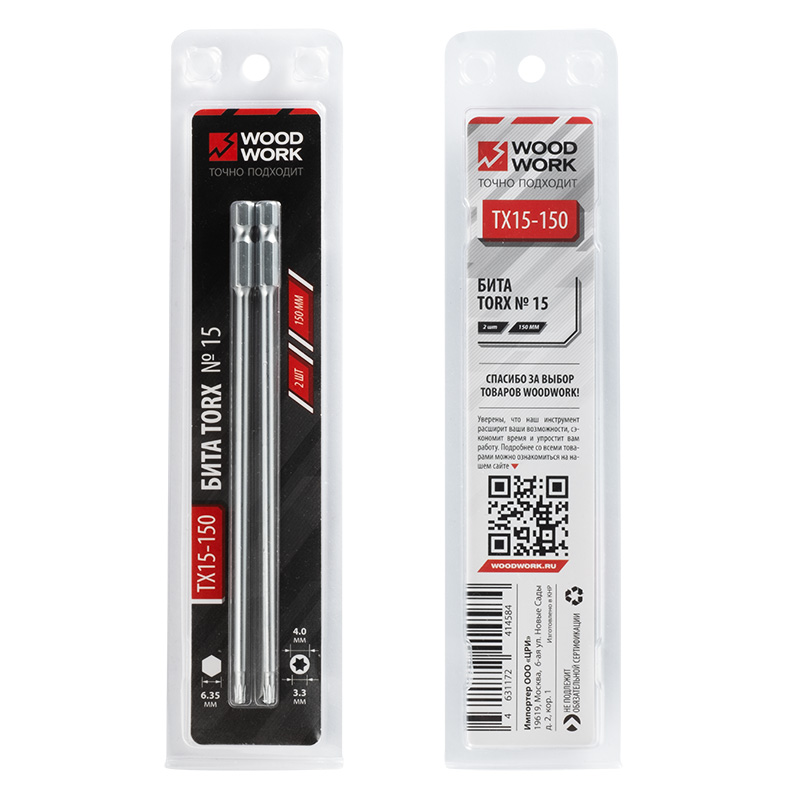 Набор бит TORX-T15 №2 для саморезов WOODWORK TX15-150