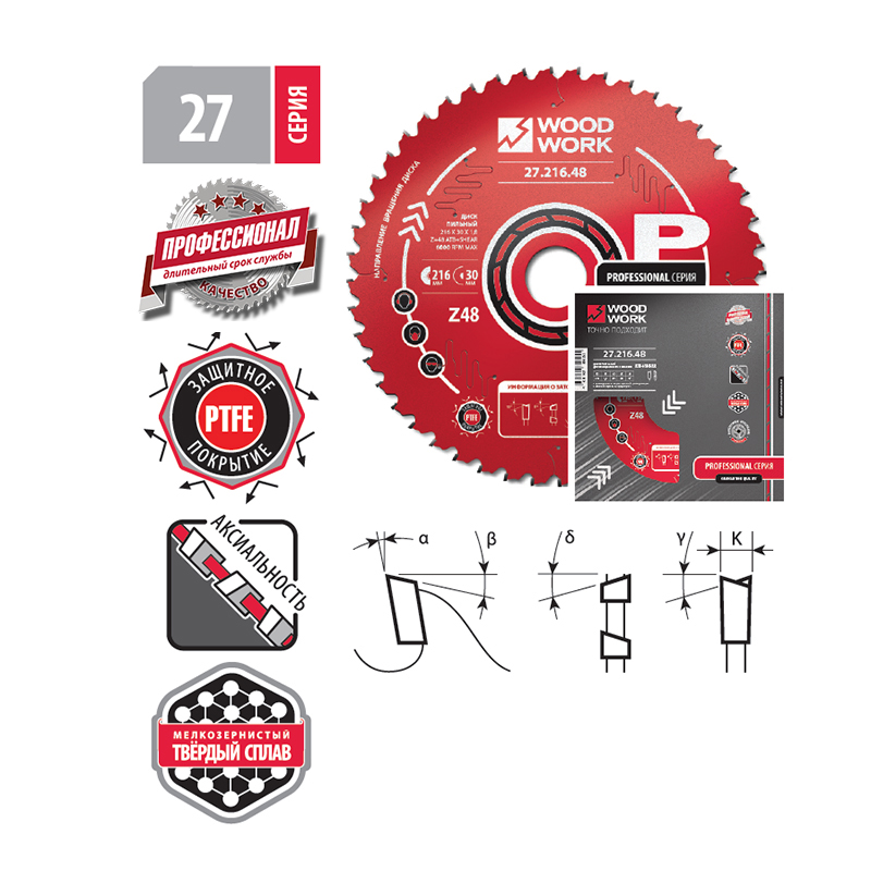 Пильные диски для продольного и поперечного реза дерева Серия 27 Woodwork Professional/Вудворк Профессионал
