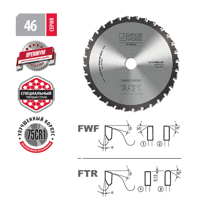 • это высококачественная линейка пильных дисков со специальной формой заточки зубьев и улучшенным корпусом• специально предназначенные для резки стали пильные диски серии 46 Премиум Woodwork/Вудворк без использования смазки и охлаждающей жидкости